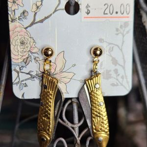 Feeling Stabby Brass Fish Earrings Gold Plated Posts