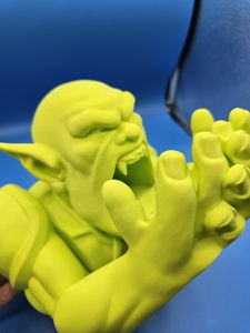 This isn't just a statue; it's a functioning, interactive piece of gaming gear. The Orc's arms are the key: