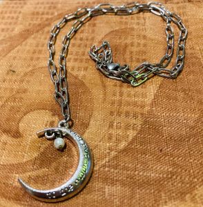 love ❤️ Moon shape has an attached faux pearl dangle comes on a large-link stainless steel paperclip chain. Pendant is metal alloy.