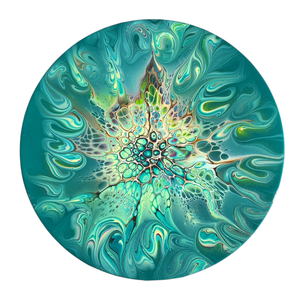 0 savesThis unique painting is an original, one-of-a-kind fluid art piece made using a combination of acrylic and house paints. It was created using the Shelee bloom technique along with "wrecking" (drawn in modifications). 90s Nostalgia, which was inspired by the bright colors seen in Lisa Frank art during my childhood, contains some lovely color shifts in blue and yellow which can be seen in the videos below. The canvas is 10"x0.7" and has been signed and dated, sealed with a gloss protective coating, and finished with d-ring hanging hardware.