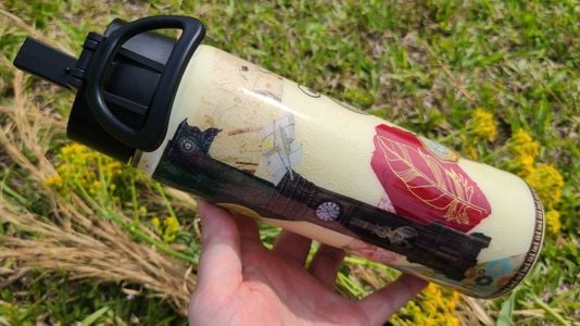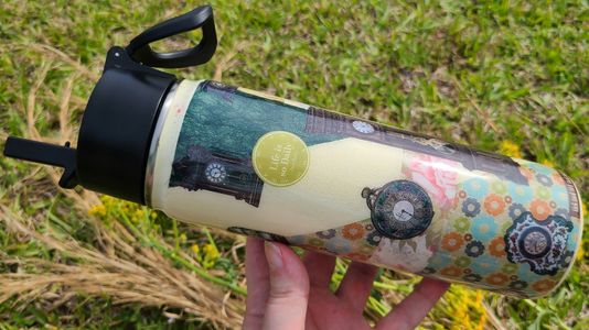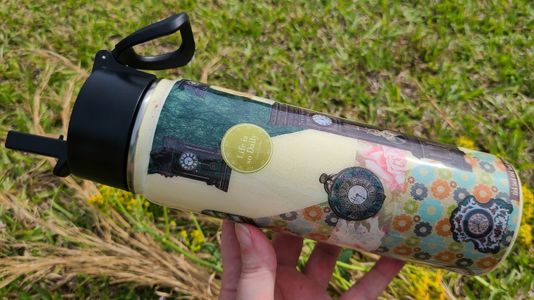0 savesWith an emphasis on clocks and gears, there is an underlying steampunk aesthetic to this one of a kind custom water bottle. Inspired by the hobby of creative journaling, this one of a kind water bottle features a unique theme enhanced by the skills and concepts of this imaginative hobby. This 22 oz sublimation water bottle is capable of keeping hot beverages hot for up to 12 hours and cold beverages cold for up to 24.The water bottle is stainless steel and double walled coated with resin to protect the underlying design. All water bottles are hand wash only.