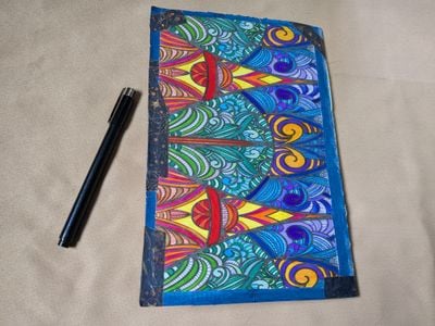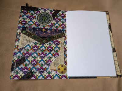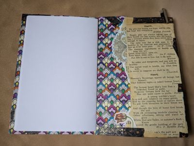 Chaotic/ Garden Theme, decorated by hand with paper crafts, stickers and washi tape. 48 stitched in pages with tourn edges. Front slip pocket. (5'' x 8'')