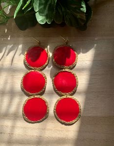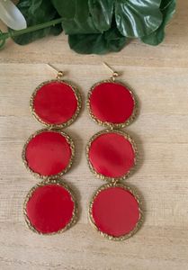 0 savesFor my vintage lovers, these Handmade Triple Vintage Framed Circle Earrings are the perfect blend of timeless charm and modern style. Each pair features three rich red polymer clay circles framed in textured gold for that classic vintage-inspired look. These elegant dangles are lightweight, eye-catching, and perfect for any outfit — from casual fall styles to chic evening wear.