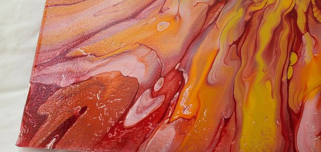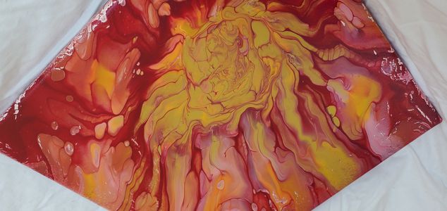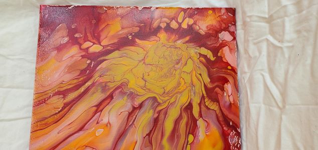 0 savesThis 12x12" canvas was intended to look like a flower, but I think it looks more like an explosion of pink, red, and yellow*! What looks like cracking is actually just the way the white paint is peeking through the colors. It's sure to add a lively pop of color to any room.