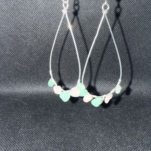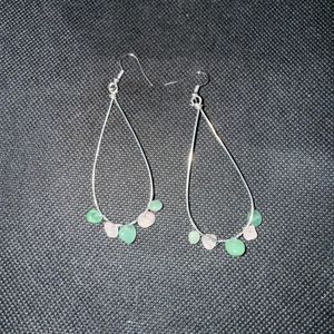 2 savesGreen Aventurine & Rose Quartz Teardrop Dangle Earrings on silver wire and hooks.