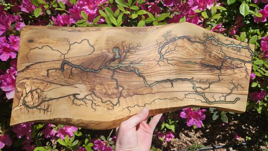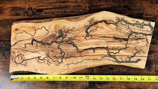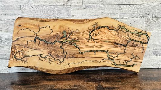 0 savesFractal wood burning is the process through which electricity is used to create free-form designs that are burned into the wood as the electricity passes through it. Once the piece is done, the parts that were burned are cleaned out, and a resin inlay is applied. Then the whole piece is sanded to a uniform finish. All wall decor is treated with teak oil, and is therefore water resistant. This means that the piece is good for indoor or outdoor decoration. This piece is made out of Italian olive wood that was cut down for general olive grove maintenance. It's distinctive wood grain pattern is easily identifiable by any olive wood lover. Message shop owner with questions.