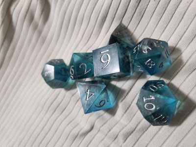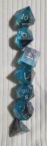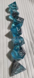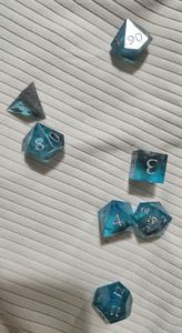 Blue translucent dice with silver ink