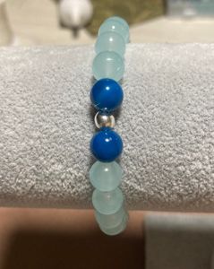 A lampwork glass octopus adorns this charm bracelet with aquamarine-colored glass beads and two dark blue agate beads. A must for any lover of the sea! Stretch, fits most wrists.