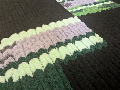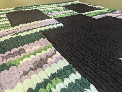 Gamer’s delight! “Creep” Blanket features authentic Minecraft™ creeper design in greens/greys. Large 53×67in, ultra-soft chenille – Miss Midge approved! 💥
