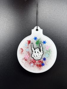 0 savesAdd a touch of dark whimsy to your holiday décor with this set of six festive skull ornaments. Perfect for those who love a goth twist on traditional Christmas or Halloween decorations, these ornaments blend sparkle, snowflakes, and subtle bones to create a unique seasonal vibe. Whether you're decking the halls or adding flair to your tree, these glittering skulls bring a playful yet edgy spirit to your celebrations.