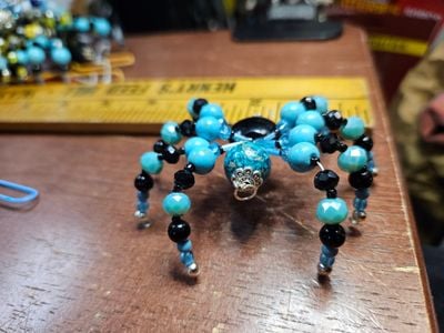 Vintage Glass Beaded Spider 3" Turquoise Blue.