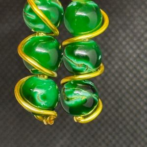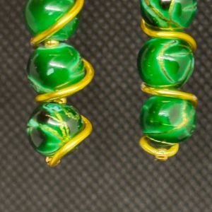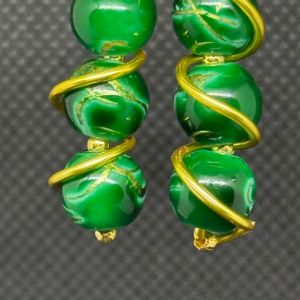 1 savesGreen & Gold Wire Wrapped Sphere Dangle Earrings.
