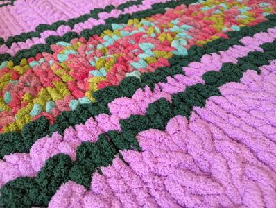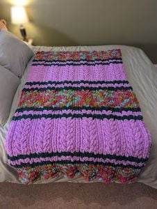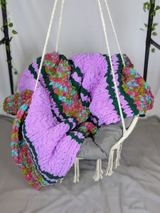 Unfold magic with our Fairy Garden Blanket! 42Γ62in butterfly-stitch knit in purples, greens, blue & pink. Chunky chenille polyester blend - ultra-soft & purr-approved by Miss Midge. Whimsy delivered! π¦π