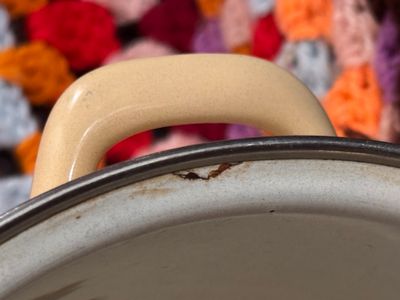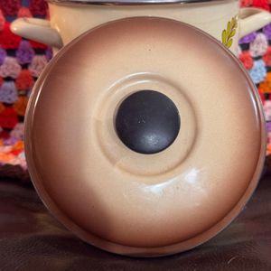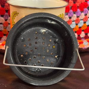 Sears Vintage Merry Mushroom 1970s Enamel Stock Pot With Lid and Strainer
