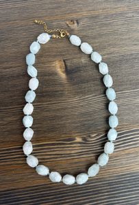 1 savesThis statement necklace features faceted genuine Aquamarine barrels hand knotted on light blue colored silk thread. Findings are durable, tarnish resistant gold PVD. Necklace measures approximately 17.5icnhes in length with a 2inch extender.