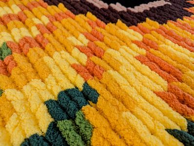 Floral masterpiece! “Sunflower Symphony” Blanket in yellow on blue, crafted with 9 colors. 60×45in, ultra-soft chenille - truly one of a kind! 🌻 The intricate color and design details Your dedication and artistry in its creation Its unique status as a one-off masterpiece!