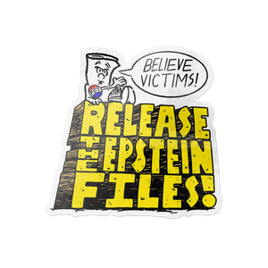 Look, we don't need to see the files to know he's in there. We believe victims. Anyone who's not in the files should have no problem with them being released. The victims deserve justice. This is a 4" x 4" vinyl decal features white hand drawn lettering and a bill telling the world to believe victims. Weatherproof and made to last, it’s a must-have for anyone who believes in punching up and shutting hate down. We will be donating all profits from this design to an org who helps victims of sexual assault. Locally for in Missouri that organization is Mocsa - https://mocsa.org/ They have been working in this field, specifically helping victims for over 50 years and we are proud to contribute to their work in helping victims.