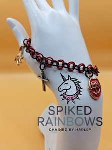 0 savesChainmail bracelet made from Anodized Aluminum rings and enamel charms. Measures to be 8 inches long. Will ship within 3 business days of order.