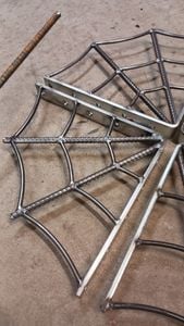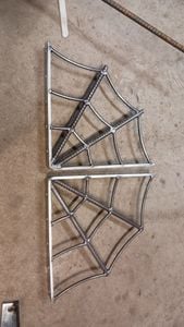 Custom welded steel spider web shelf brackets. All hand made. No two exactly the same.