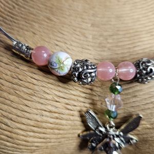 0 savesSilver Metal Fairy Rose Quartz Crystal Choker Collar Necklace. Silver Filigree Beads. Ceramic Floral Beads. Rose Quartz Beads. Drop beads are cut Czech Crystal in green and clear. Large Fairy Charm.