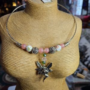 Silver Metal Fairy Rose Quartz Crystal Choker Collar Necklace