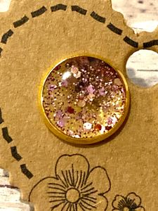 Gold stud earrings with pink sparkle resin. Studs are half an inch in diameter. Item may not be the exact one pictured. Any questions please ask :) ***Custom orders welcome!***