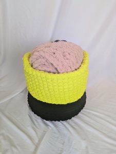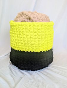 0 savesMake a statement with the "Toxic Waste Basket", a 13-gallon hand-knit storage piece that’s as eye-catching as it is practical. Featuring a neon yellow-green rim (like a glowing tennis ball) paired with a solid black base, this basket brings edgy energy and bold vibes to your space + all while keeping your toys, laundry, or supplies neatly in place. Complete with two sturdy handles and a self-standing design, it’s the perfect mix of fun and function.