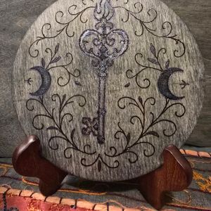 A hand-burned altar tile inspired by Hekate’s sacred key.
