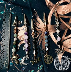 4 savesBurn your bay leaves and intention herbs without singed fingers. Each clip features a sturdy stainless alligator jaw, hand-wrapped wire (copper or silver tone), and a strand of genuine gemstone beads finished with a witchy charm (moons, pentacle, mushroom, nazar, etc.). Every piece is one-of-a-kind; stone patterns and charms will vary slightly.