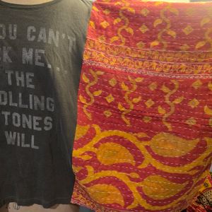 Band Tee + Indian Kantha Quilt = Groovy Poncho!