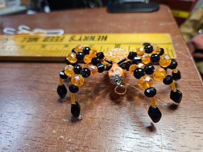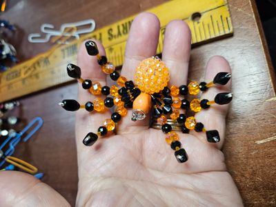 0 savesVintage Glass Beaded Spider. About 3" across. All reclaimed vintage beads. Loop to wear as a necklace, bag charm or hang as a sun catcher. All handmade by me. Custom color orders available.