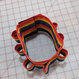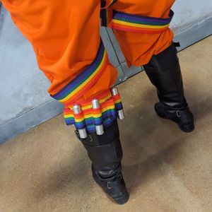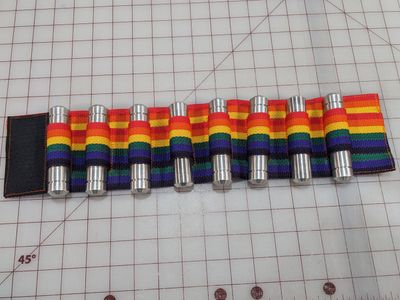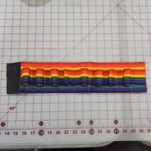 Our new Pride X wing pilot leg strap is sewn with Rainbow webbing and has a velcro closure. Your leg flares can be bolted to the strap from the back side.