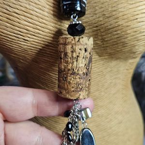 0 savesVintage Wine Cork Lanyard Charm Necklace. Vintage cork and charms. 28"-30" length. Cat and Fish Bone Charms. Black Chunk Lampwork Bead. Black Jet Bead. Leather Cord, Stainless hardware.