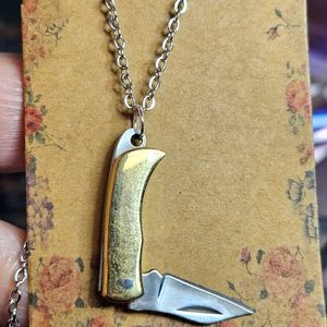 Feeling Stabby Mini Brass Knife Necklace. Real Mini Knife on Stainless Steel Necklace. About 1.5" long.
