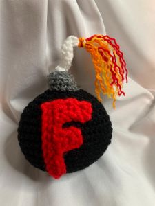 Crocheted in all black with a bold red “F,” a white braided wick, and fiery orange-and-red flames, it’s funny, bold, and totally safe to throw when the day gets frustrating. Plush, lightweight, and handmade with care, this little bomb adds a pop of humor to any space.