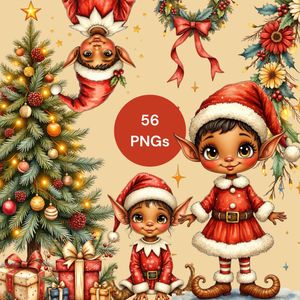 Add a touch of magic and diversity to your holiday projects with our African American Elves Clipart Bundle! This collection features 56 adorable, high-resolution PNGs of elves, fes...