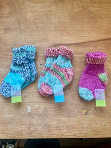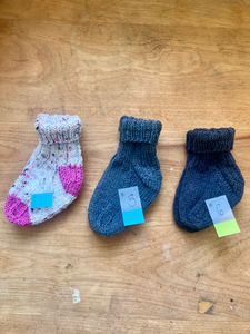 0 savesKnitted infant socks made with fingering weight yarn (Superwash wool.) These will fit infants 3-9 months old.