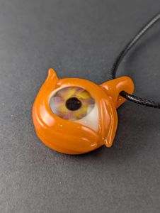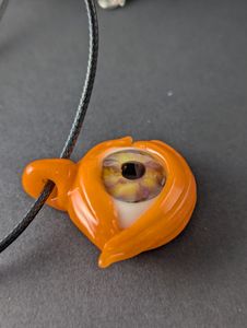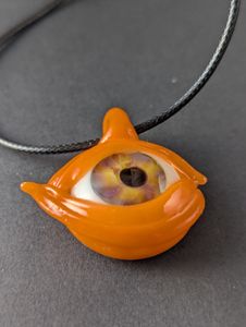 0 savesLava orange eyeball pendant. Borosilicate glass, on a braided cord.