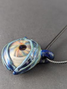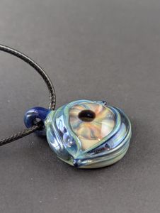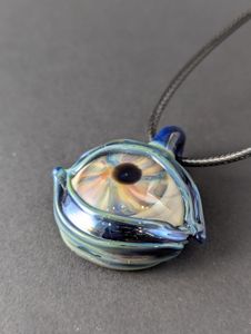 0 savesBlue eyeball pendant. Borosilicate glass, on a braided cord.