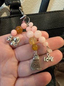 0 savesQuartz bead bag charm with elephant, fox, and owl silver charms