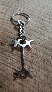 Steel skeleton key made to honor the goddess Hacate on custom chain and keyring