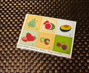 0 savesThe fruits on these magnets are original art, digitally painted by me. Each measures 3"x3". They are intended more for decoration than for their magnet strength. The colors make me happy, hope they make you happy, too! SOLD AS A SET OF 6, nicely packaged.
