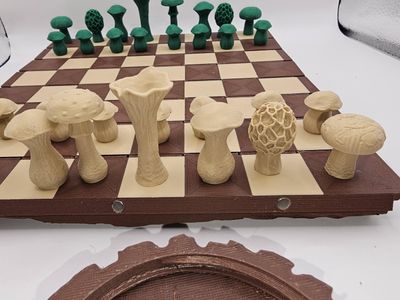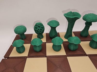 The pieces are a whimsical tribute to the forest floor: one side features charming Fungi in earthy green, while the other boasts a cozy beige, creating a delightful contrast for your battles of wits. And for those who love a simpler challenge, the set includes acorn-top checkers, adding a touch of woodland charm to your game night.