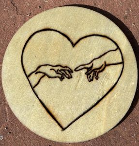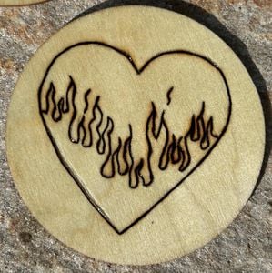 Add a touch of warmth and love to your space with these hand-burned wooden heart coasters ❤️ Each coaster is a 3-inch round piece of natural wood, featuring a unique heart design ...